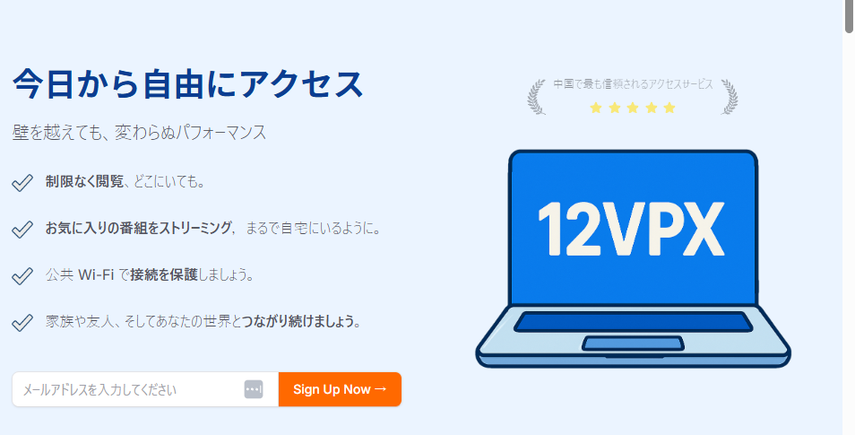 12VPN(12VPX)は、中国のインターネット規制に強く、中国サイトの閲覧や中国から快適にインターネットを楽しむことができます。