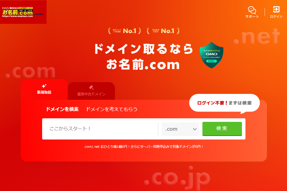 例えば、お名前.comでドメインを取得しお名前.comレンタルサーバーを契約する、というような感じです。
