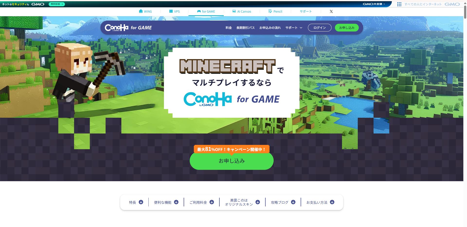 今回は、ConoHa VPSでマイクラサーバーを立てる方法について手順を解説しました。また、ConoHa VPSの特徴や料金、プランの選び方の目安なども紹介しましたので、マイクラをプレイする際の参考にしてみてください。