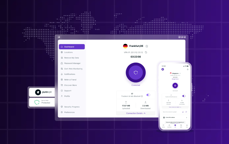 PureVPNは香港を拠点とするVPNサービスであり、7日間100円のお試し価格が用意されていたりと比較的低価格で利用できることが特徴です。また、同時接続台数は10台までとなっており、無制限で利用できるSurfsharkまでとはいかないものの、同サービスのなかでも比較的多くの複数接続が可能です。