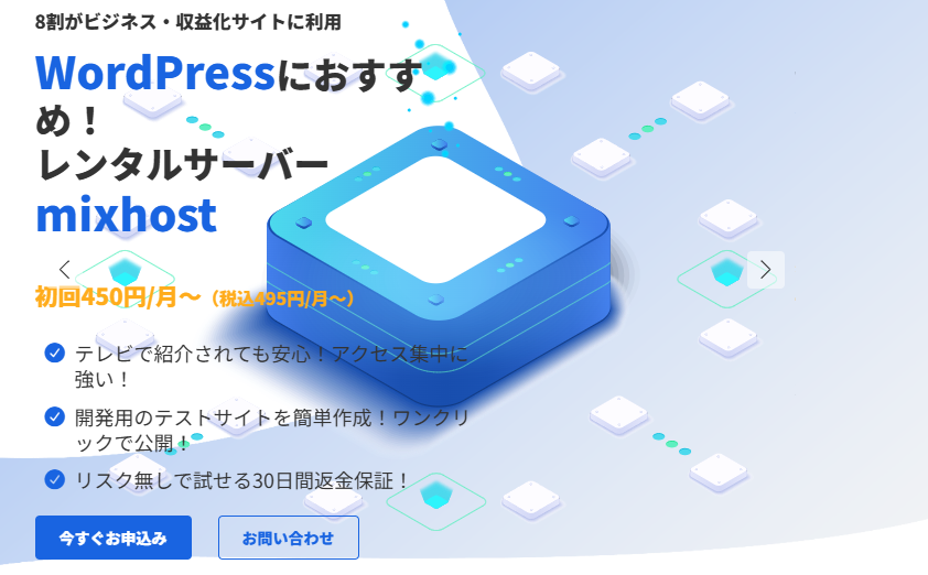 mixhost ![]() | 日本初の 最先端技術 | 0円 | 968円〜 | なし | |