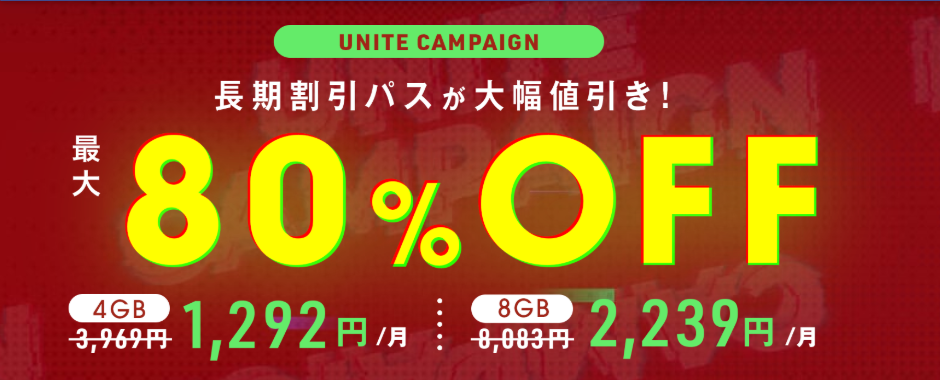 | キャンペーン名 | 長期割引パスが大幅値引き! |