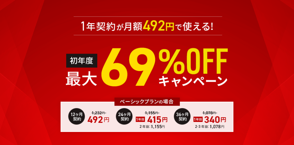 | キャンペーン内容 | 初年度最大69%OFF! |
