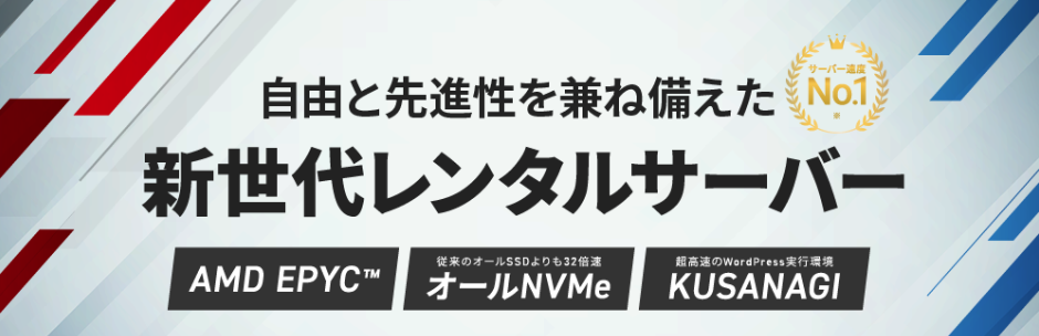 高速化技術KUSANAGIを導入しており、WordPressの表示速度も高速で、ブログやウェブサイトの作成や運営に利用されています。