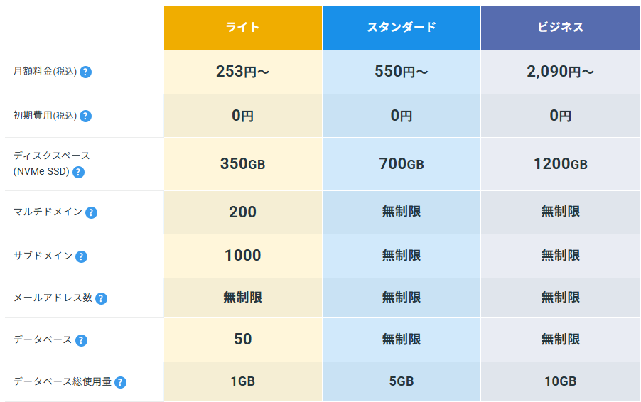 サイトを複数運営したいのであれば、スタンダード以上のプランを選択するようにしましょう。