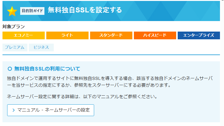 スターサーバでは、以下の2つの独自SSLの設定が可能となっています。