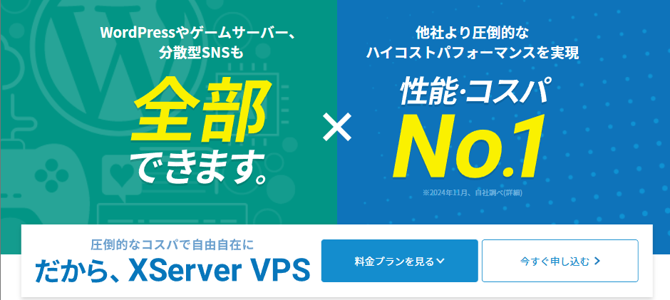 XServerVPSは「NVMe」が採用されており性能コスパNo.1のVPSサービス