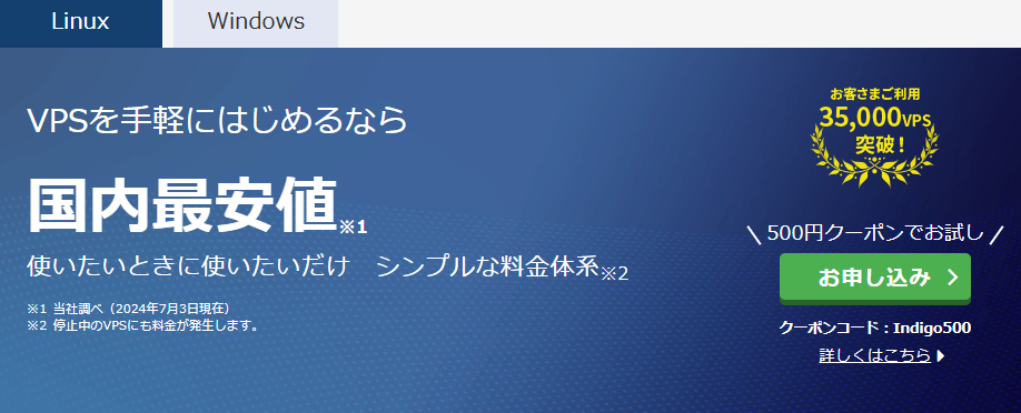 日本の国内VPSサービスでは無料で利用できるVPSはありません。